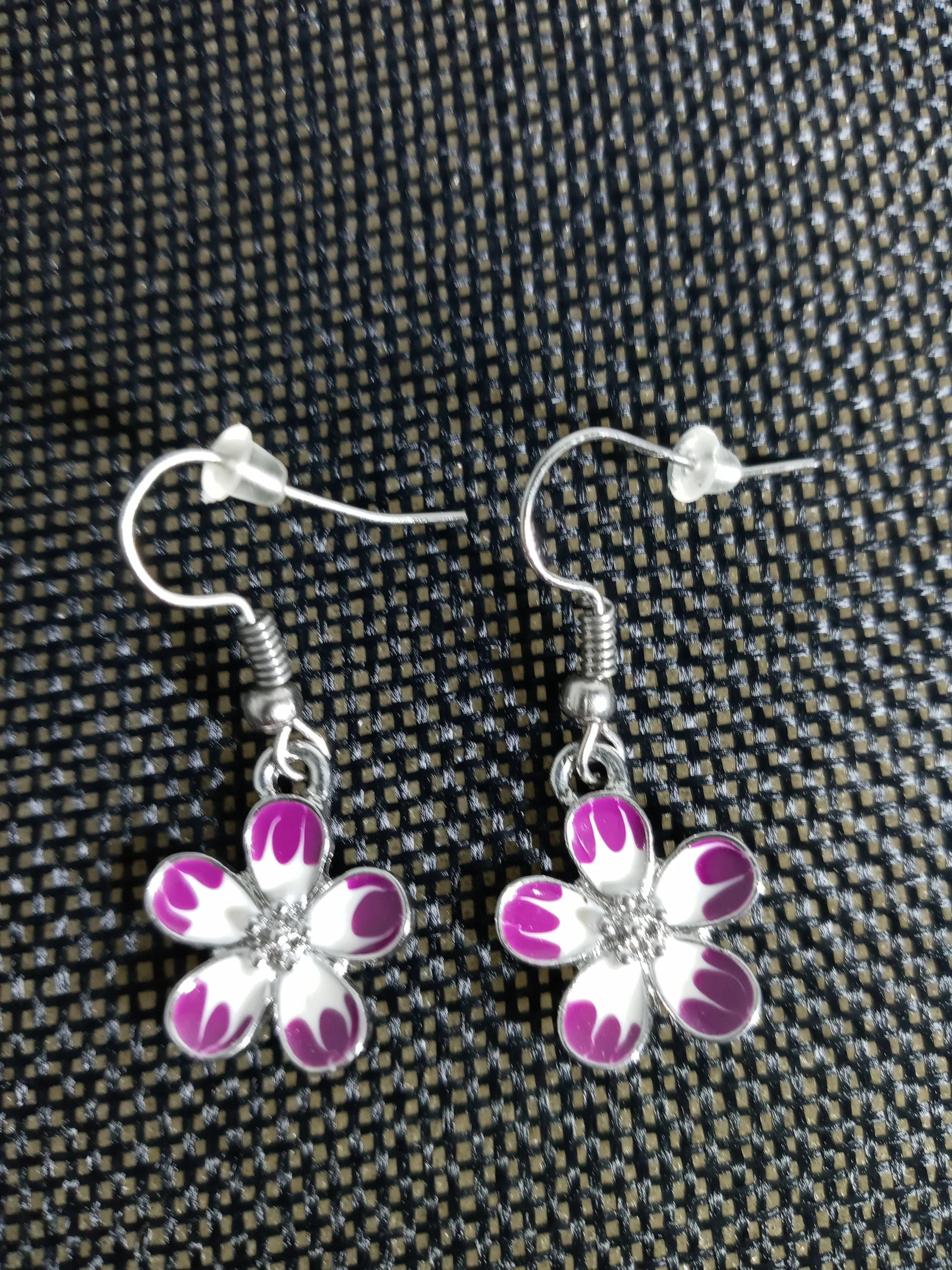 Purple and White Daisy Flower Earrings on Stainless Steel Earring Hooks (Hypo- Allerginic)